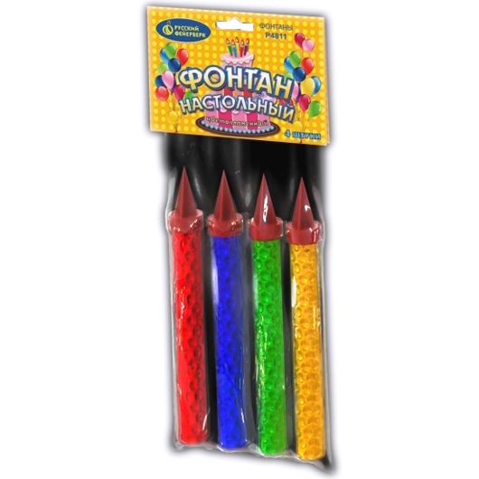 Настольные пиротехнические фонтаны - название условное. Так называют целый разряд пиротехнических изделий, основное отличие которых - возможность использования в закрытых помещениях и минимальная безопасная зональность. Строго говоря, у настольного фейерверка понятие безопасной зоны чисто номинальное, потому что его нередко эксплуатируют в непосредственной близости от людей - на сцене, в ходе шоу-программ, для украшения интерьеров. Ну и, конечно, Вы можете купить настольные фонтаны для их прямого применения - на сервированном столе, за которым при этом присутствуют гости.